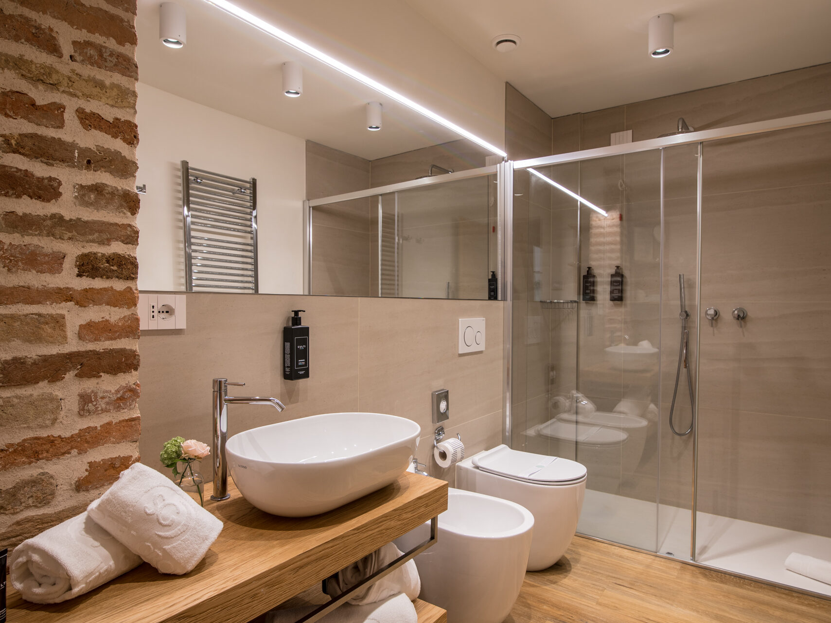 Infine spaziosi bagni dallo stile moderno, ti accompagneranno a raggiungere il massimo del benessere del vostro soggiorno.