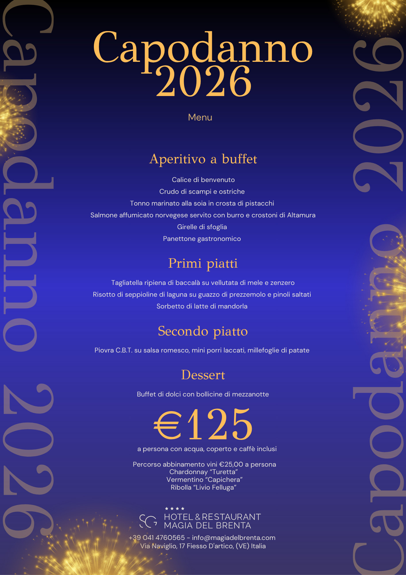 Il Ristorante Magia del Brenta apre le porte della sua villa per un Capodanno esclusivo nella splendida Riviera del Brenta.