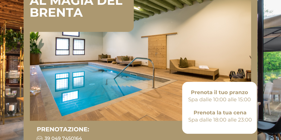 Prenotando un pranzo o una cena al Ristorante Magia del Brenta (minimo 2 persone), ti offriamo in regalo l’accesso alla piscina e alla nostra Spa, per trasformare un semplice momento a tavola in una piccola fuga rigenerante.